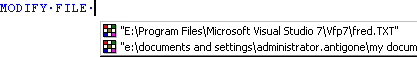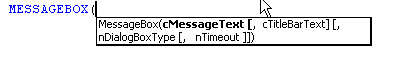List Members: Specifying an object, such as _VFP, and pressing the dot will bring up a list of members of that object. VFP's Intellisense will also do this with existing (instantiated) live objects while developing, but it is also smart enough to pop up these lists in code windows when the objects are strongly typed. See Figure 4, Figure 5, and Figure 6 respectively.