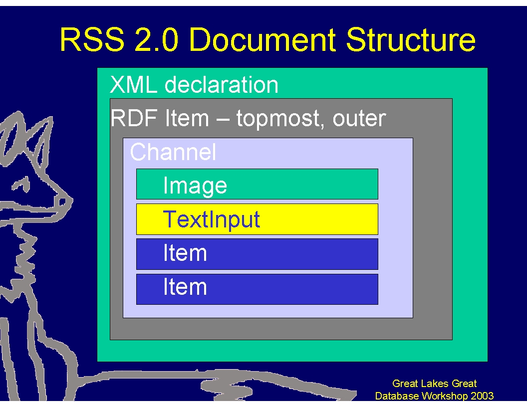 Many news, discussion and weblog sites let users subscribe to change notifications using RSS – the RDF Site Summary or “Really Simple Syndication” standards. Standards? Yes, there are several. However, the good news is that RSS is encoded as XML and can therefore be parsed and produced with any application that’s good at manipulating XML – like Visual FoxPro! But RSS is not limited to news organization feeds. Consider using it where many clients need to determine if one publisher has changed data to query. This session will include demonstrations of current uses of RSS in newsreaders, web sites, aggregation sites, and Visual FoxPro applications.